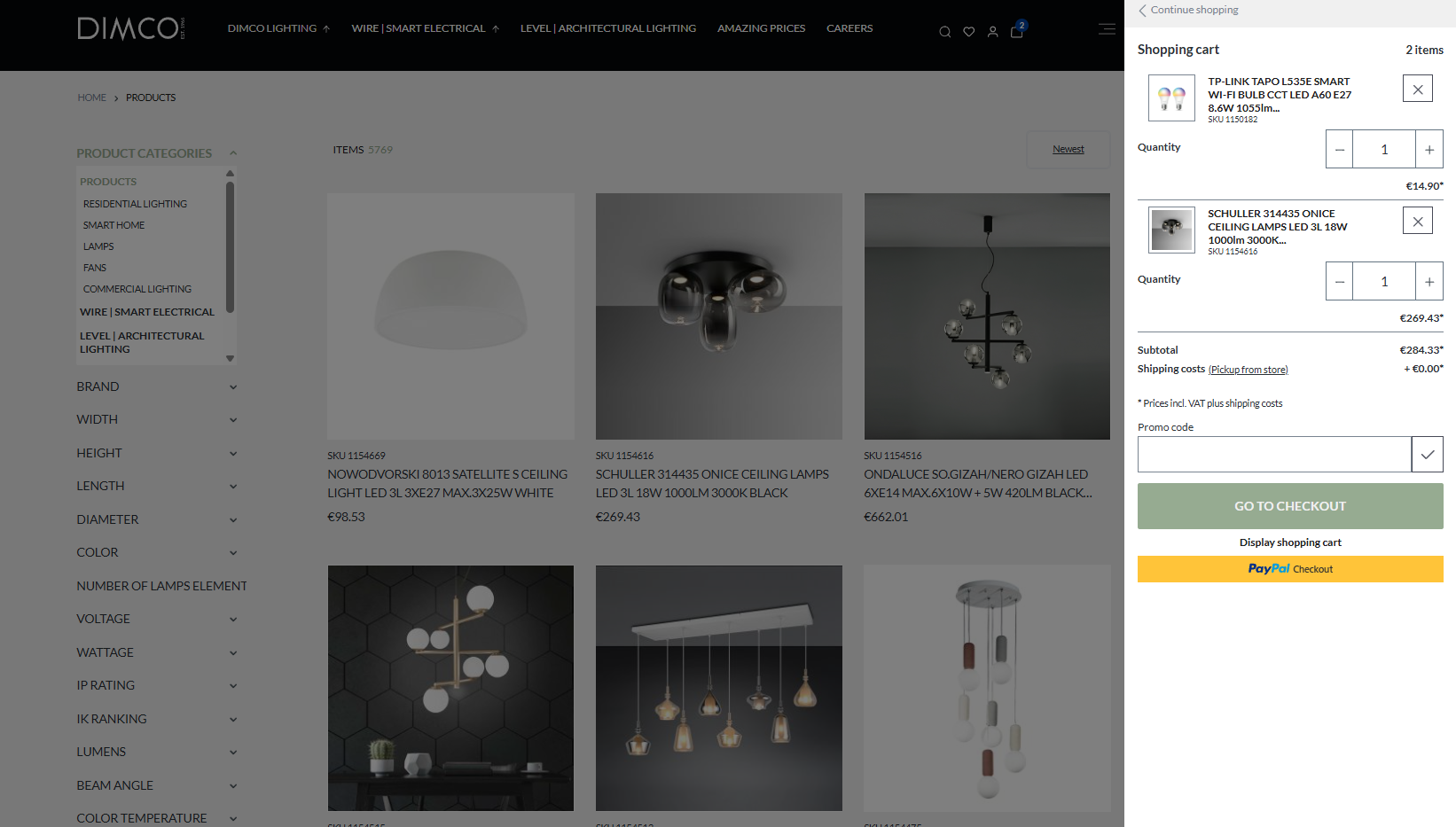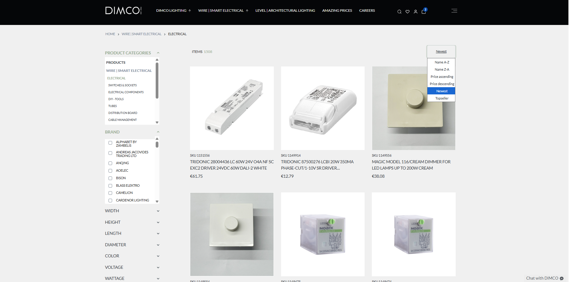 DIMCO lighting solutions e-commerce website on desktop and mobile.